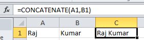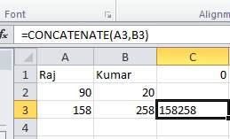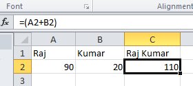 To Add text of two or more cells in Excel you have to use the Formula Bar which is shown above the work area of sheet with a symbol of functions.