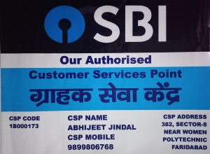 CSP is a Common Serice Point of a Bank. It is also called the Banking Kiosk. It works just like a mini Branch of a Bank. Accounting Opening, Money Transaction, Passbook Printing are the main functions of a CSP. There is a State Bank of India Common Service Point (SBI-CSP) at 382, Sector-8, Faridabad.
