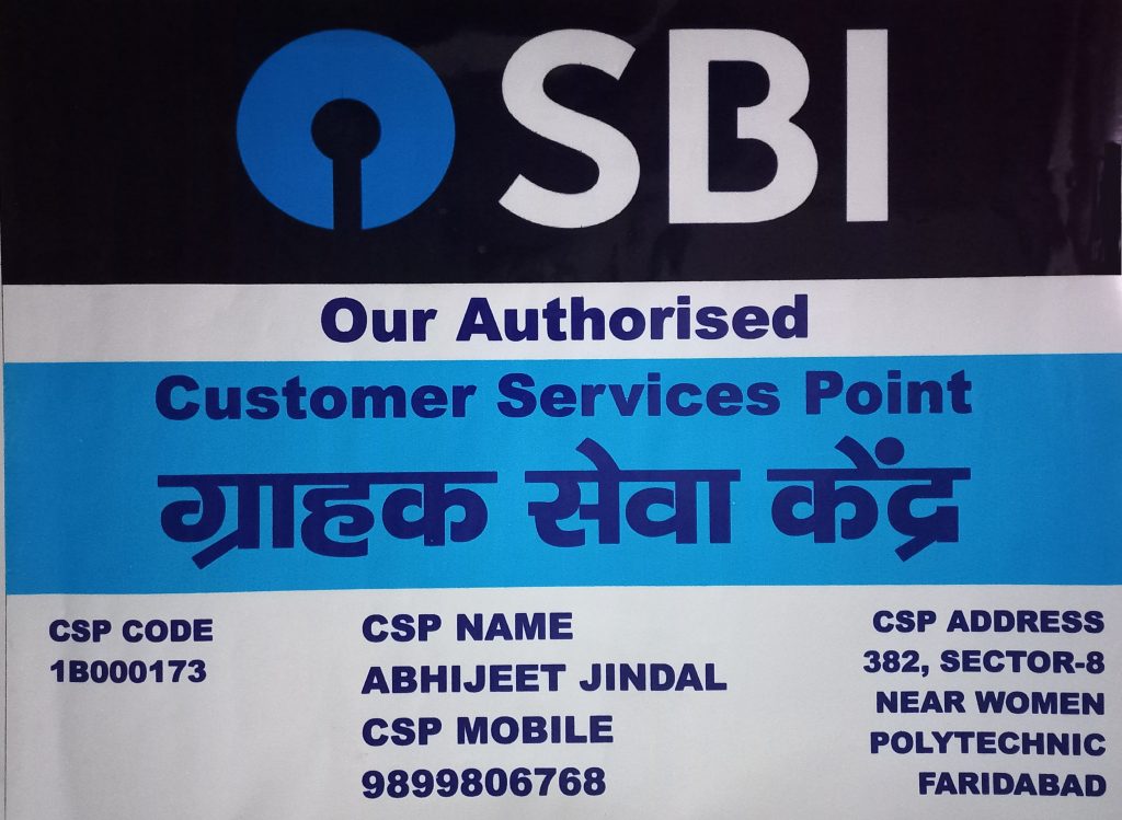 CSP in a Customer Service Point of State Bank of India. It is a banking Kiosk. Day to Day banking needs are met by these CSP. One of such CSP is located at 382, Sector-8, Faridabad-121006. Its CSP owner is Abhijeet Jindal. A well-educated and mannered person. He has educational qualification of Computer and Business Management. You may use the services provided by this CSP which is near to your residence. You may contact the owner of CSP at 9899806768. It is whats app number.